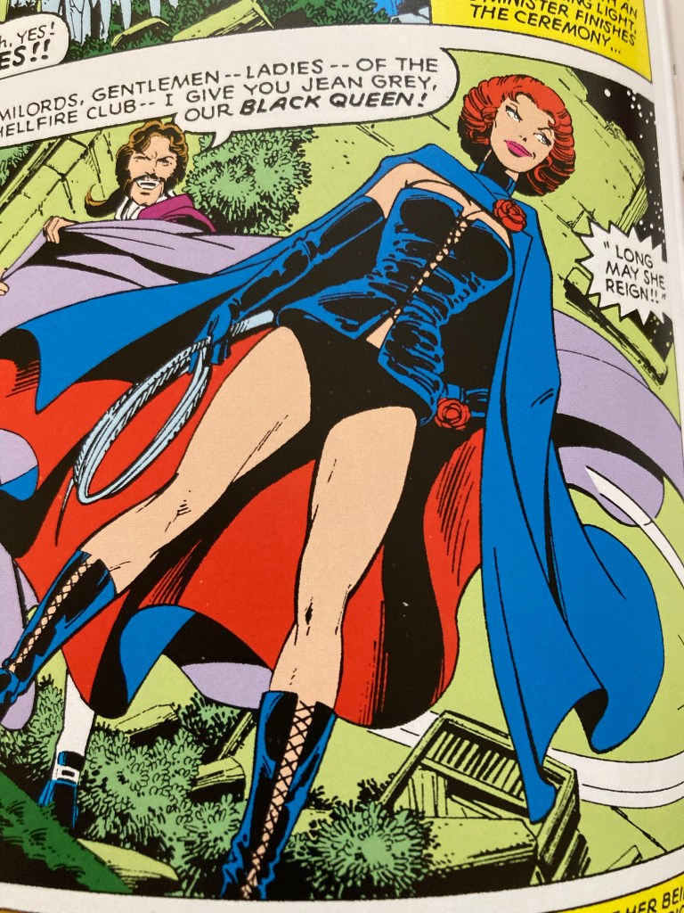 Both images and story are pretty iconic these days – and an interesting illustration of how popular culture feeding on itself can create great new concepts. Claremont has spoken before how watching late night cult TV programmes helped feed his ideas, and “The Avengers” episode “A Touch Of Brimstone” clearly feeds into the visuals and tone of the story.