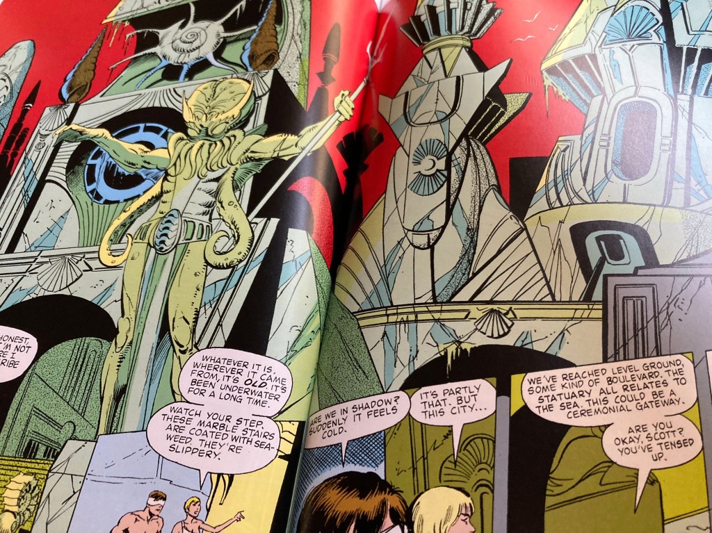 Trying to capture the awesome Atlantean Cthulu Island Complex with the thick spine of an omnibus proved impossible.