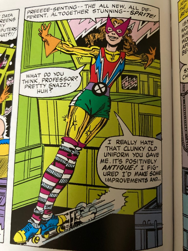 Kitty’s teenage exuberance shines through in this issue. From her outrageous teen skating costume, to her reckless stowaway routine and finally her insecure internal monologue as she tries to come good.