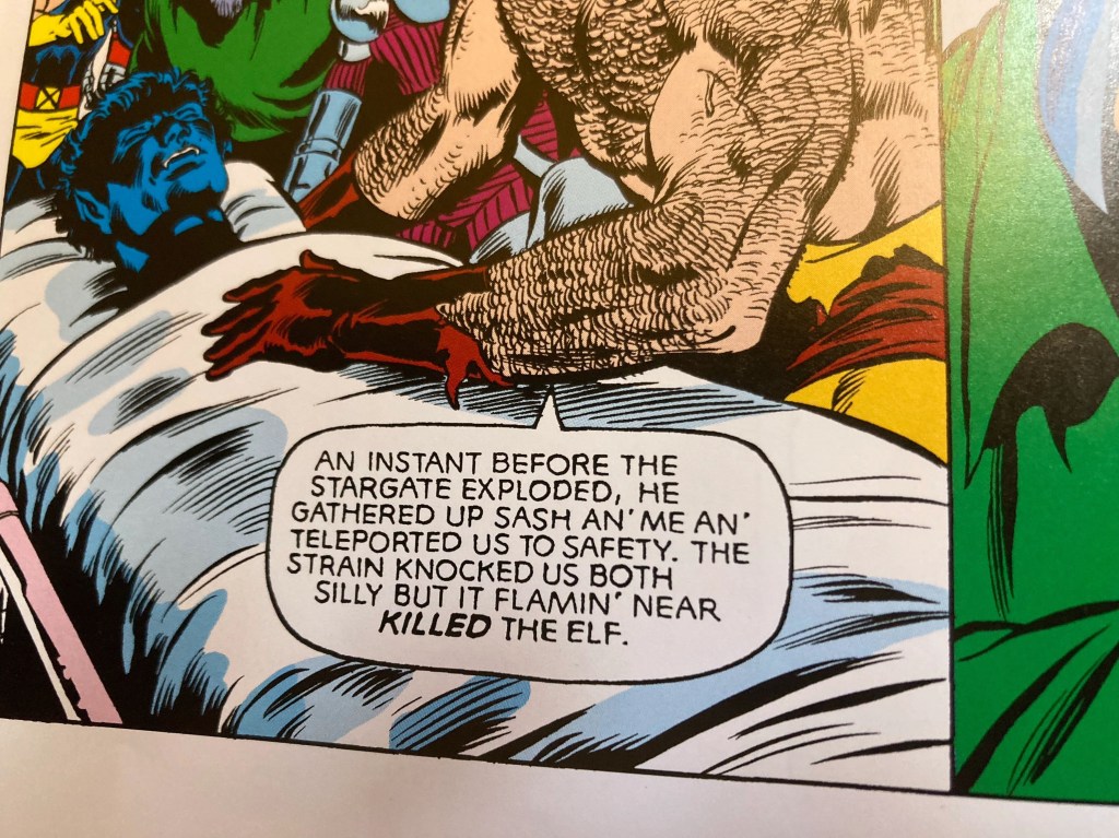It’s a frustrating thing to keep being told stuff and not shown it. Given the constraints of page counts and publishing deadlines, I can understand it happening sometimes and can roll with it. But its so frequent in this issue that it ends up detracting from the enjoyment. Nightcrawler heroically saving Wolverine but nearly dying? Given everything thats been building with their relationship, I’d love to have seen that. Instead we just get this.