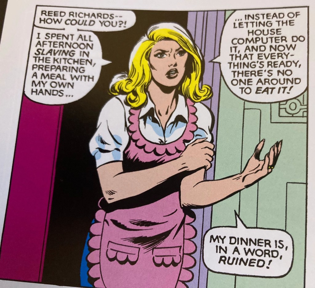 The Fantastic Four appear in this Annual, classic sixties heroes that seems to being out classic sixties sexism in Claremont’s writing. Sue is either at home in the kitchen preparing food for the Fantastic Four, or shes a prisoner of an evil alien lizard being leched over. It’s such a contrast with what he’s doing, primarily with the supporting cast, in the main title that’s it becomes even more jarring.