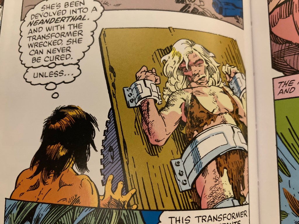 It feels mean, but when the hot blonde damsel in distress of this issue – Tanya Anderssen, gets turned into a neanderthal by EVIL DON’T ASK HOW IT WORKS SCIENCE, that this is how it looks just seems laughable.