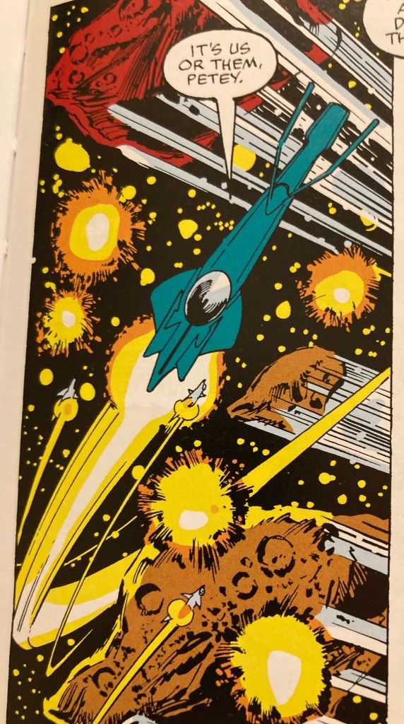 So it’s farewell for a second time to Dave Cockrum. And it’s fitting that in his final issue we get elements of all his great qualities. Firstly there’s space. and spaceships.
