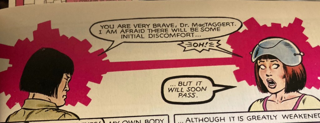 This still feels like a global perspective as seen through the Big Book of Stereotypes. Wolfsbane doesn’t seem to come from Scotland in 1982, but the same eighteenth century timesink that Nightcrawler inhabited. But within the stereotyping, there are interesting decisions being made. Sunspot is Brazilian, so obviously loves football – but he’s also Black Brazilian, from a wealthy family. An intriguing outsider status that the comic doesn’t shy away from.