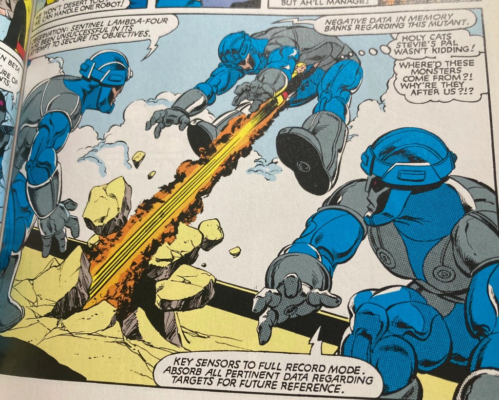 And it also reminded me that at this stage Dani Moonstar is not Mirage by Psyche. What a dreadful name. Indeed its only in this re-read that I’ve realised that the team don’t get the names until the text boses in issue one. Which is a shame – it really feels like a missed opportunity to have these kids, learning they could be heroes, create or embrace their code names. Or even a scene where they are assigned (and as teens inevitably kick against it). I have no recollection of what Psyche turns into Mirage. I guess a reason to keep reading.