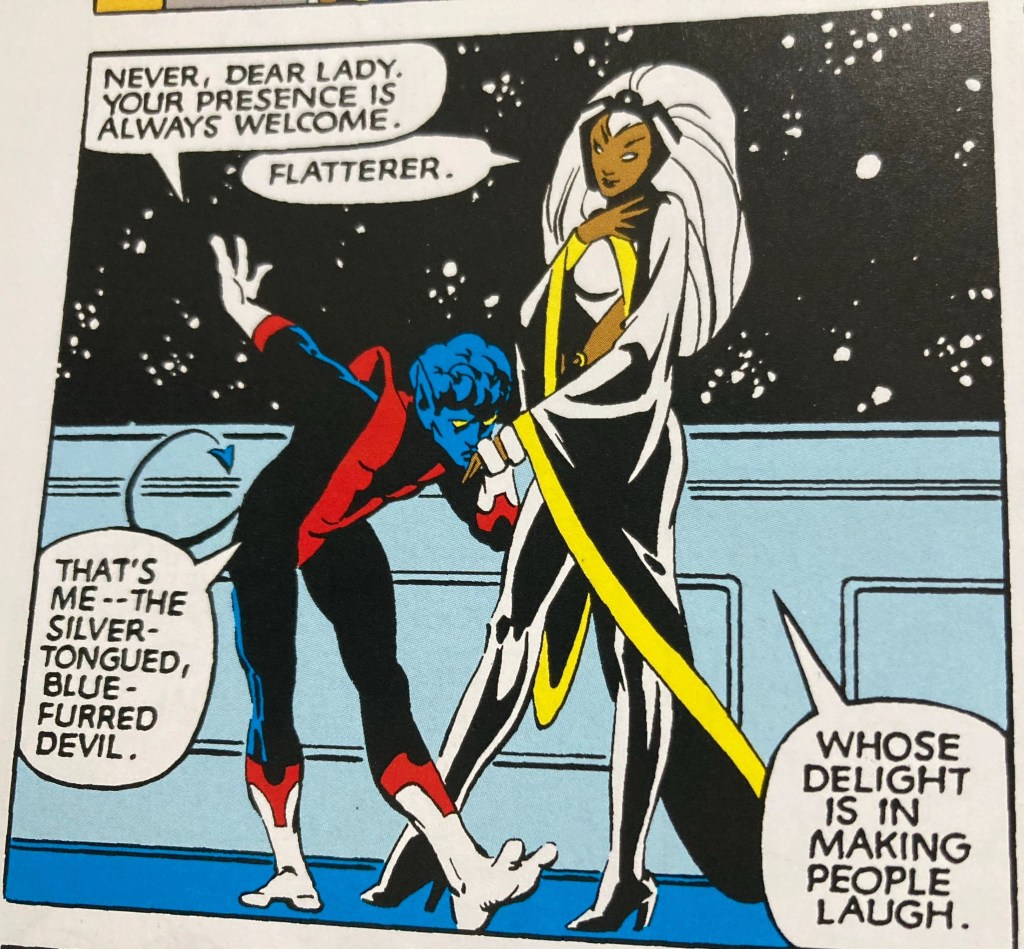 It turns out to be not only reversible bit the beginning of a reinvention of Xavier, taking him out the wheelchair. One of the mantras about comics – being an ongoing medium that has spanned decades is that the stories should give the “illusion of change”. But one of the fascinating features of the Claremont Run is that he makes change seem real. The characters are so well defined that any developments feel important. Xavier stands up (briefly) here and it feels big.