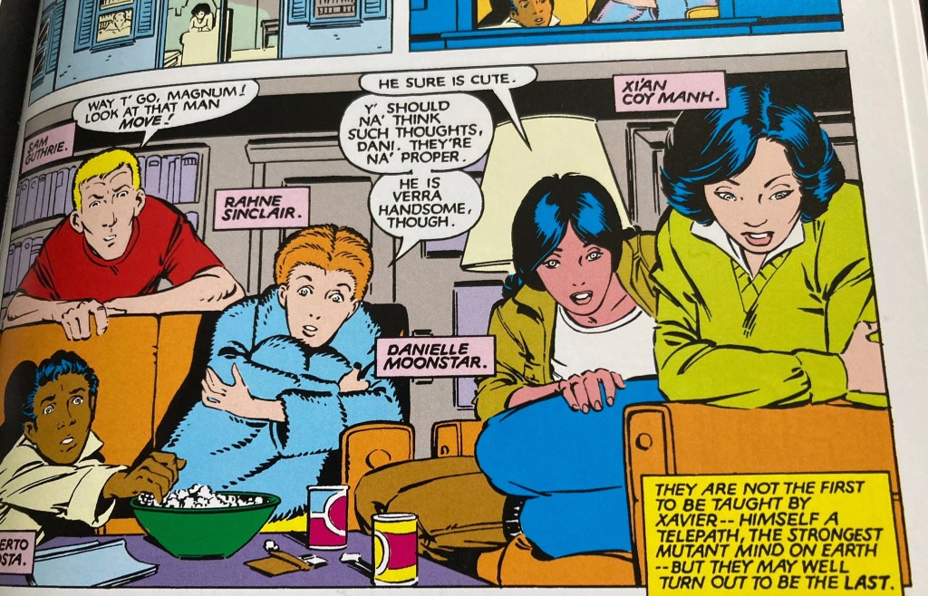 Alongside the defeat of the Brood, the issue is full of brilliantly written tiny moments that help define the characters of the X-men and the New Mutants. I could pick half a dozen, but I’ll just focus on this one that says so much with so little and some striking Paul Smith Pop Art.