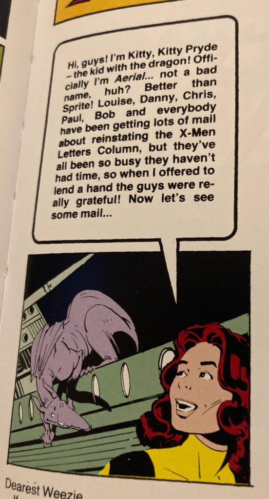This issue starts the beginning of a short run where they answer the letters page in character, with different X-men taking it in turns to answer the letters. This managed to be both cringingly twee but quite fun at the same time.