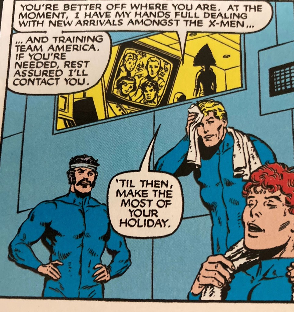Had to be that entertaining cliffhanger. Trust the New Mutants to get their own version of the Savage Land, but with Romans instead of Dinosaurs. Had Claremont been in charge of a third title, the mind boggles what awesome kid obsession would have been next. A secre lost valley peopled only by Monster Trucks?