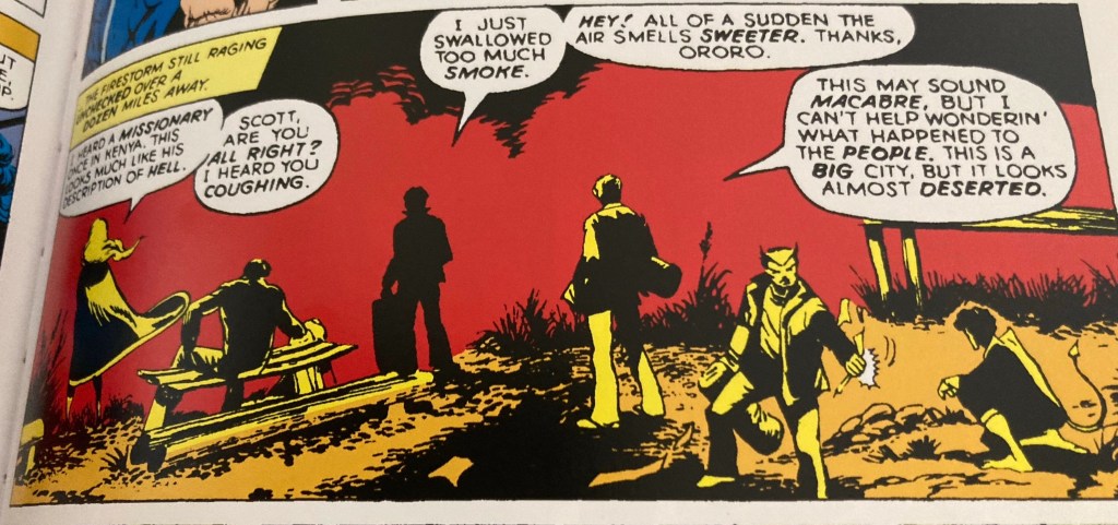 It seems a bit churlish to point out that Phoenix is now set up as an incredibly powerful mutant but seems completely unable to detect that her lover and friends are still alive. Nor does Xavier seem bothered to boot up Cerebro. So I won’t. Just ignore that last paragraph.