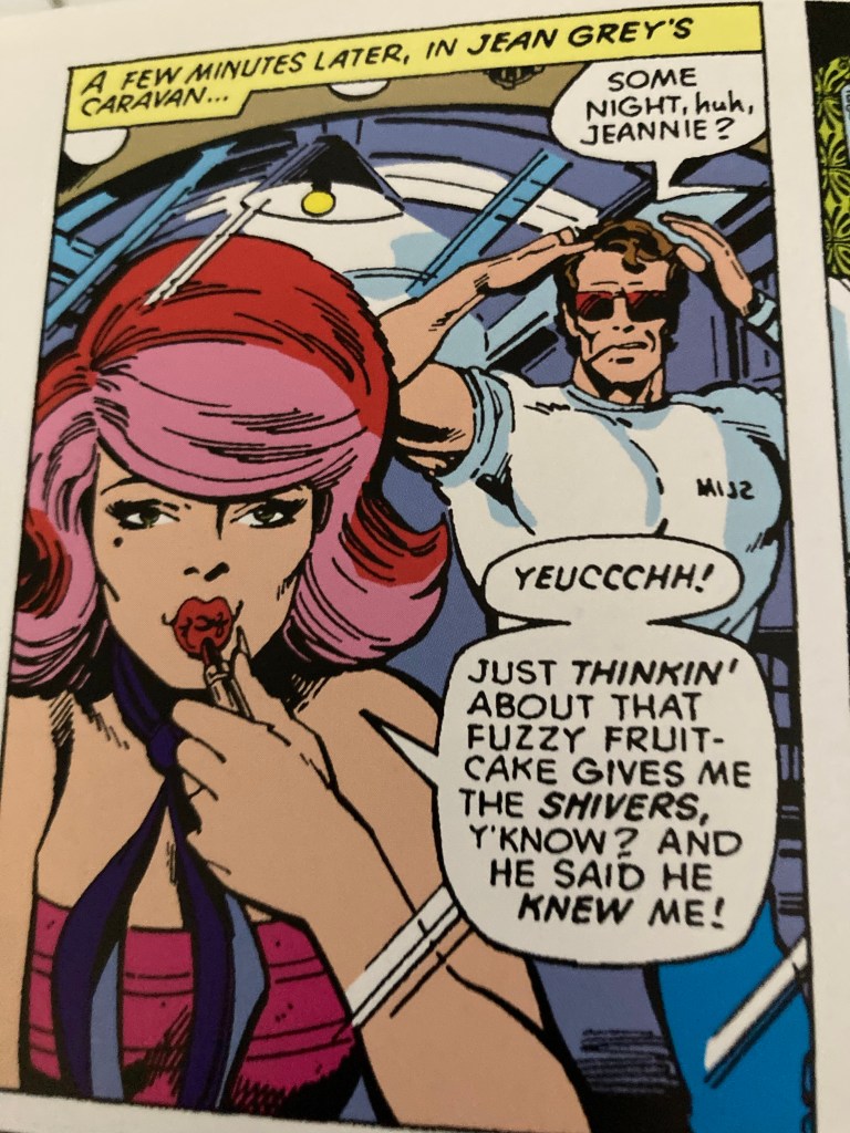 Over time Claremont finds a use for all of them, although its more interesting that its her in-title development as a character that I find far more fascinating than any of this. And I think it is fair to argue that there is no reason why a character in a comic can’t have a complex background like some people in the real world do. But it really is a crazy three pages in here. Before we even get to setting up her crippling claustrophobia.