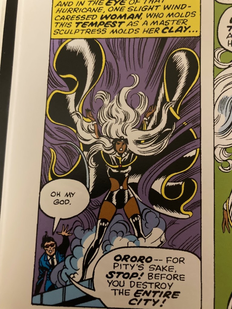 Storm gets naked again. For some reason. For every step forward she seems to get in terms of characterisation, she also seems to get a retrograde one of this nonsense.
