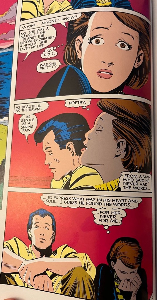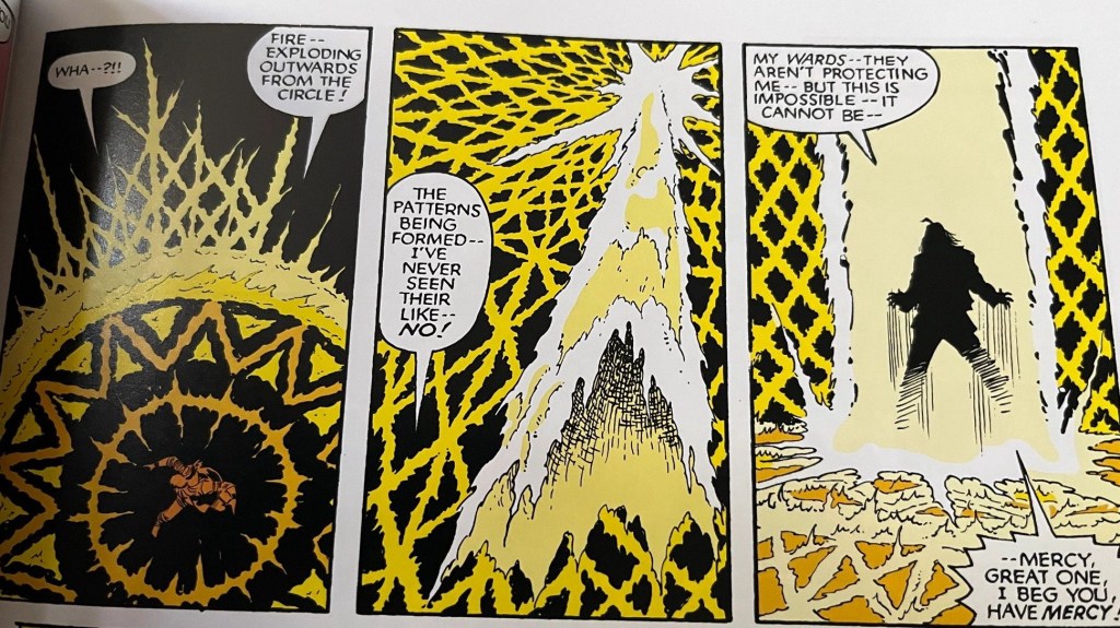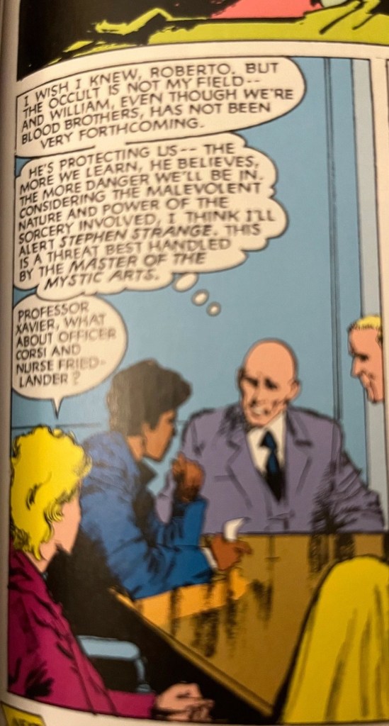 The last issue ended with a great cliffhanger, and there’s a nice resolution to it here and Claremont brings together all his magical X-characters to the fight with – well – its never really defined.