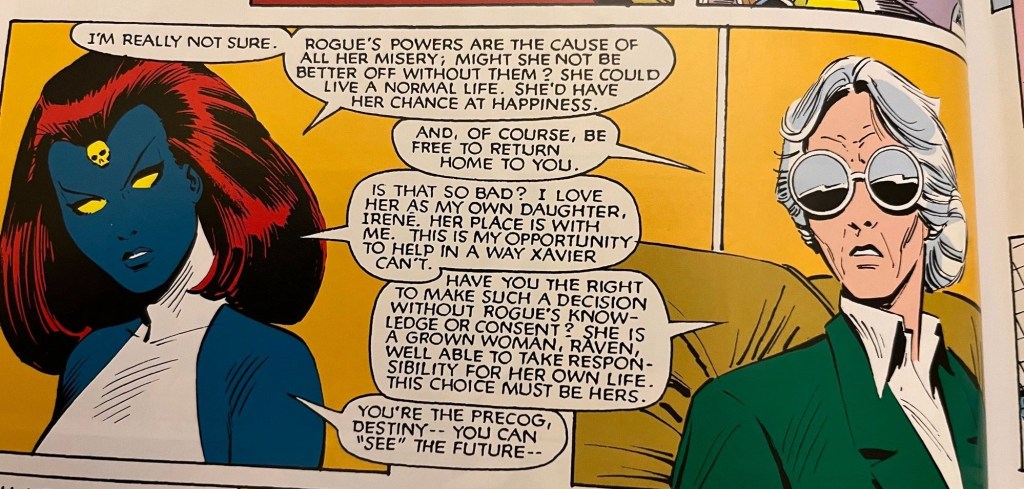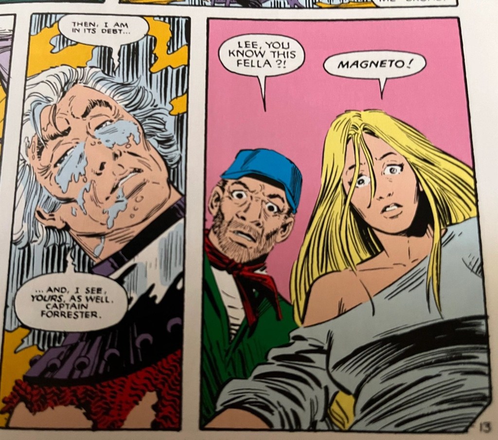 It’s also a notable issue for bringing forward a couple of key developments that have brewing over the last couple of issues of both this title and New Mutants. Firstly Rachel joins the X-men. And Magneto is rescued from the sea. These are going to be important plot lines for Claremont going forward and you can see how much potential he sees in both.
