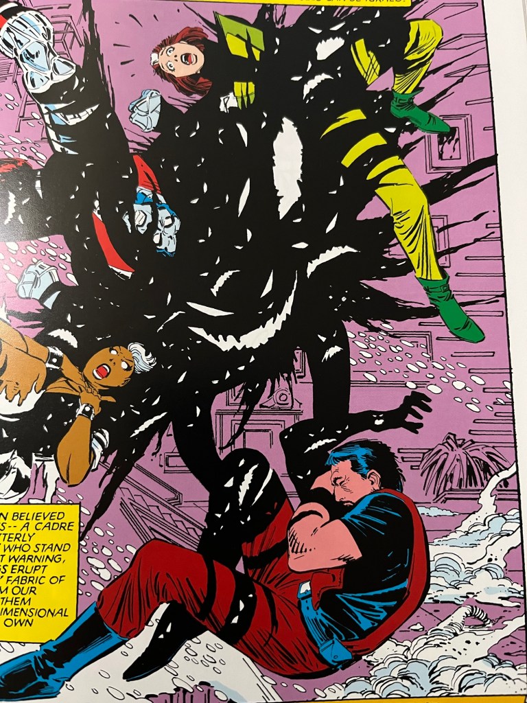 Claremont has been pushing the darkness in his various Hells. From the rather classical firepits of Belasco to more twisted and nightmarish Hells. Such as this one where some sort of horrible, vague Lovecraftian *thing* emerges and threatens to take over the Earth.